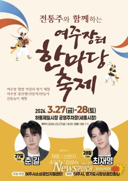 [20260318100439-57476]뉴스펀치 박상훈 기자 | 여주시는 여주시소상공인지원센터 주최⸱주관으로 지역 전통주 문화를 알리고 지역 상권에 활력을 불어넣기 위한 ‘전통주와 함께하는 '여주장터 한마당 축제'’를 개최한다고 밝혔다.