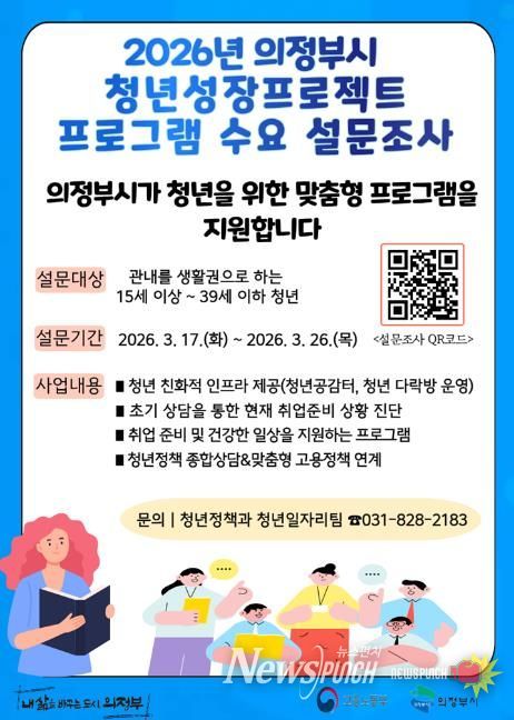 뉴스펀치 박상훈 기자 | 의정부시는 청년들의 취업 준비 과정에서 필요한 프로그램을 파악하고 사업 운영에 반영하기 위해 청년성장프로젝트 프로그램 수요조사를 실시한다.