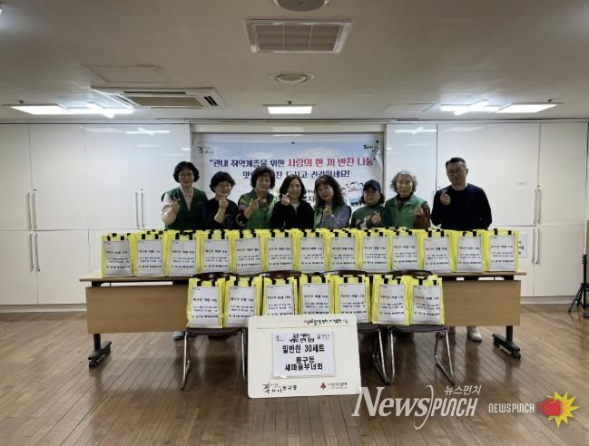 뉴스펀치 박상훈 기자 | 구리시는 동구동 새마을부녀회가 지난 17일 동구동 행정복지센터에서 ‘홀로 어르신 사랑의 한 끼 밥상’ 나눔 봉사를 진행했다고 밝혔다. 이번 활동은 지역 내 홀로 거주하는 어르신들에게 정성껏 준비한 식사와 반찬을 전달하며 따뜻한 이웃의 정을 나누기 위해 마련됐다.