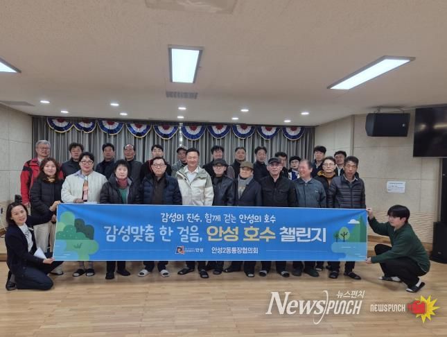 뉴스펀치 박상훈 기자 | 안성시 안성2동 통장협의회는 지난 17일 금광호수 일원에서 ‘감성맞춤 한걸음, 안성 호수 챌린지’ 첫 일정을 진행했다고 밝혔다.