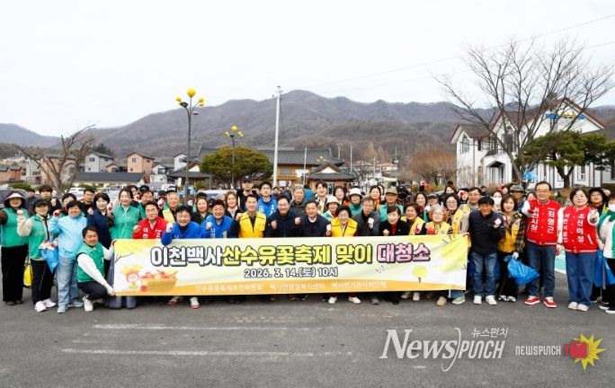이날 대청소에는 이천백사산수유꽃축제추진위원회를 비롯해 백사면 기관·사회단체 회원과 도립1리 마을주민 등 100여 명이 참여해 축제 준비에 힘을 보탰다. 산수유마을과 산수유 군락지 일대를 중심으로 도로변 쓰레기 수거와 마을 환경 정비, 행사장 주변 환경 정화 활동을 하며 쾌적한 축제 환경 조성에 나섰다.
