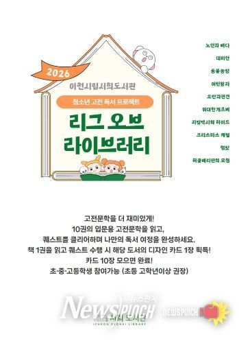 뉴스펀치 박상훈 기자 | 이천시 서희도서관은 청소년 독서문화 확산을 위해 3월 21일부터 청소년 고전독서 프로젝트를 새롭게 운영한다.