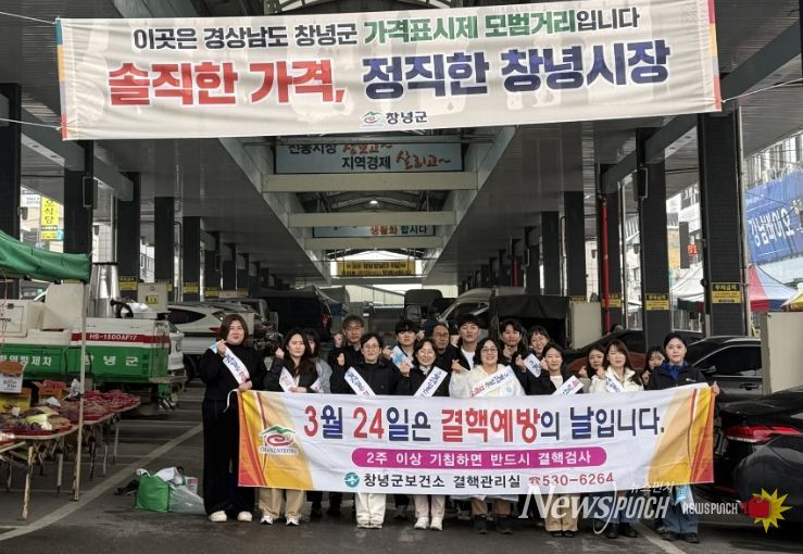뉴스펀치 박세훈 기자 | 창녕군은 제16회 결핵예방의 날(3월 24일)을 앞두고 “함께해요, 결핵 ZERO! 기침=신호, 검진=보호, 치료=야호”를 주제로 결핵에 대한 경각심을 높이고 인식 개선과 조기 검진, 예방의 중요성을 알리기 위해 18일 창녕시장 일원에서 지역주민을 대상으로 결핵 예방 홍보 캠페인을 실시했다.
