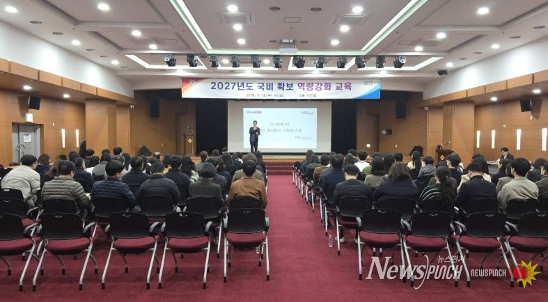 뉴스펀치 박세훈 기자 | 진주시는 18일 시청 2층 시민홀에서 전 부서의 현안 사업 담당 공무원 160여 명을 대상으로 ‘2027년도 국비 확보를 위한 직원 역량 강화 교육’을 실시했다.