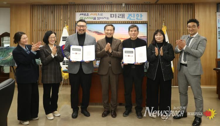 18일 진안군청 군수실에서 열린 계약식에는 강광배 ㈜케이샷/Ciao Asia 대표와 김정배 사업단장, 전춘성 군수, 한소영 과장이 함께했다.