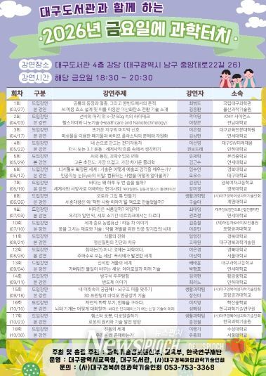 뉴스펀치 조평훈 기자 | 대구도서관은 시민들에게 최신 과학기술과 연구 성과를 쉽고 흥미롭게 전달하기 위해 ‘2026년 금요일에 과학터치’ 프로그램을 본격 운영한다.