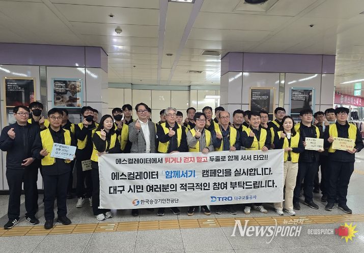 뉴스펀치 조평훈 기자 | 대구교통공사는 지난 17일 한국승강기안전공단과 협력해 3호선 청라언덕역 환승 에스컬레이터의 안전 안내표지를 전면 개선하고, 올바른 승강기 이용 문화 정착을 위한 합동 캠페인을 전개했다.