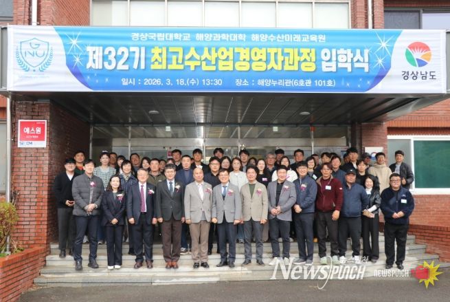 뉴스펀치 박세훈 기자 | 경상남도는 18일 경상국립대학교 해양과학대학 해양누리관에서 45명의 교육생이 참석한 가운데 제32기 최고수산업경영자과정 입학식을 개최했다고 밝혔다.