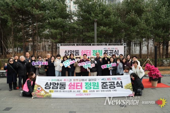 뉴스펀치 박상훈 기자 | 마포구는 3월 18일 오후 3시 30분, 상암동 1749 일대에 새롭게 조성된 ‘상암동 쉼터 정원’ 준공식을 개최했다.