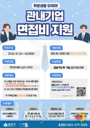 뉴스펀치 정홍균 기자 | 군산시 청년뜰에서는 청년 구직자의 경제적 부담을 완화하고 적극적인 구직 활동을 장려하기 위해 ‘청년 구직자 관내 기업 면접비 지원사업’을 운영한다고 밝혔다.