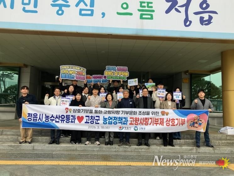 뉴스펀치 정홍균 기자 | 정읍시 농수산유통과와 고창군 농업정책과는 지난 18일 고향사랑기부제의 성공적인 정착과 지역 간 상생 발전을 위해 고향사랑기부금을 상호 기탁했다.