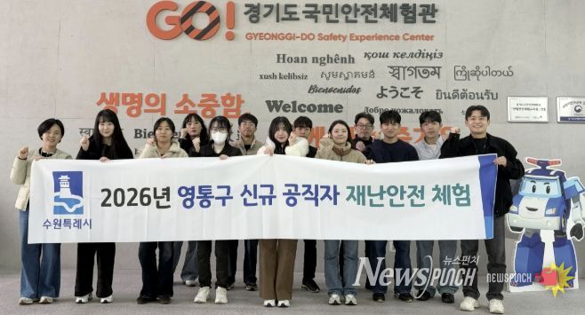 뉴스펀치 박상훈 기자 | 수원시 영통구는 지난 18일, 경기도 국민안전체험관에서 신규 공직자들을 대상으로 재난·안전 체험교육을 실시했다. 이번 교육은 신규 공직자들의 재난 대응 역량을 높이고 현장 중심의 안전의식을 강화하기 위해 추진됐다.