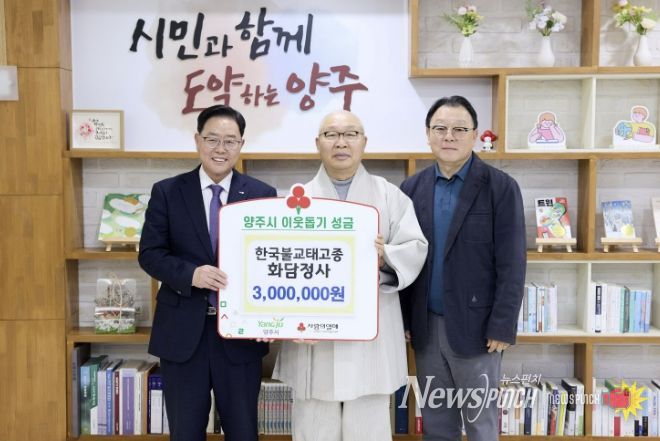 뉴스펀치 박상훈 기자 | 양주시는 지난 18일 시장실에서 한국불교태고종 화담정사로부터 이웃돕기 성금 300만 원을 기탁받았다고 밝혔다.