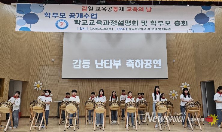 뉴스펀치 박상훈 기자 | 하남 감일초등학교는 3월 18일 2026학년도 ‘감일 교육공동체 교육의 날’을 맞아 학부모총회와 학교교육과정 설명회를 개최하고, 학생 자율동아리 ‘감동 난타부’의 축하 공연을 선보였다.