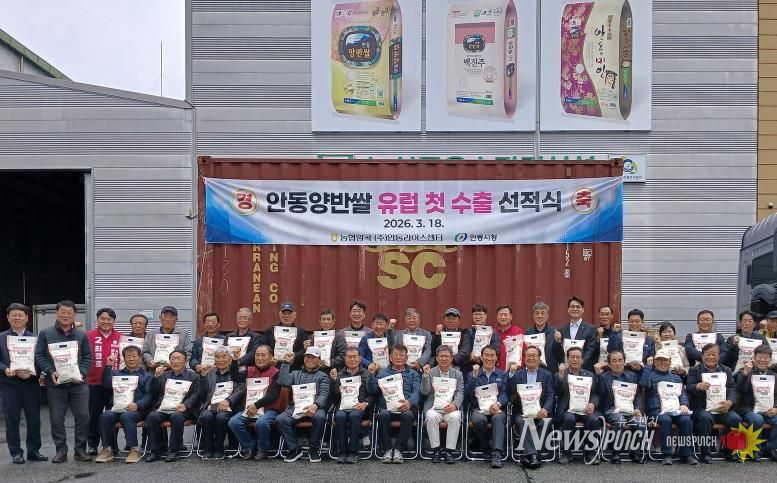 뉴스펀치 박세훈 기자 | 안동시는 3월 18일 농협양곡 안동라이스센터에서 지역대표 프리미엄 쌀인 ‘안동 양반쌀’의 유럽 시장 첫 진출을 기념하는 선적식을 열고 본격적인 수출에 나섰다고 밝혔다.