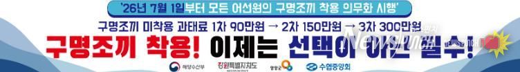 뉴스펀치 조평훈 기자 | 양양군이 어선 사고 발생 시 인명 피해를 예방하고 안전한 조업 환경을 조성하기 위해 ‘어선 구명조끼 착용 의무화’ 홍보에 적극 나선다.