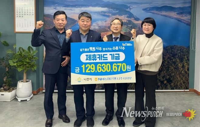 뉴스펀치 김용희 기자 | 전남 나주시는 지난 17일 NH농협은행 나주시지부와 함께 2025년도 제휴카드 적립기금 1억 2963만 원 전달식을 개최했다고 밝혔다.