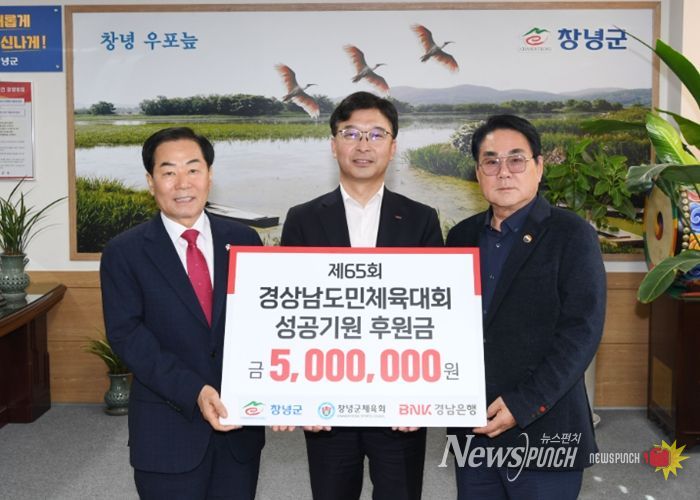 뉴스펀치 박세훈 기자 | 창녕군은 20일 BNK경남은행이 ‘제65회 경상남도민체육대회’의 성공적인 개최와 지역 체육 발전을 위해 후원금 500만 원을 기탁했다고 밝혔다.