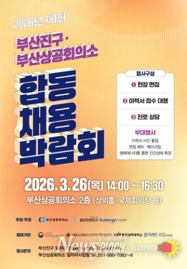 뉴스펀치 김윤걸 기자 | 부산진구는 지역 경제의 실질적인 활성화와 구민들의 취업 성공을 지원하기 위해 부산상공회의소와 공동으로 오는 3월 26일 오후 2시 부산상공회의소에서‘2026년 제1회 부산진구·부산상공회의소 합동 채용박람회’를 개최한다.