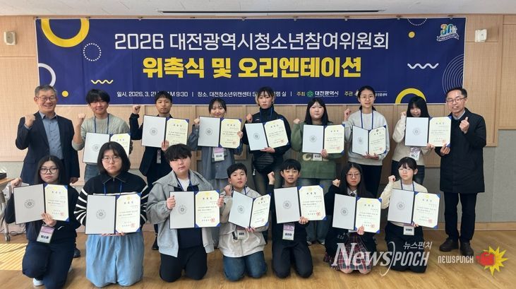 뉴스펀치 이현승 기자 | 대전시는 21일 오전 10시 대전청소년위캔센터에서 ‘대전광역시 청소년참여위원회’ 위촉식을 개최하고, 공개모집 및 심사를 통해 선발된 청소년 14명에게 위촉장을 수여했다.