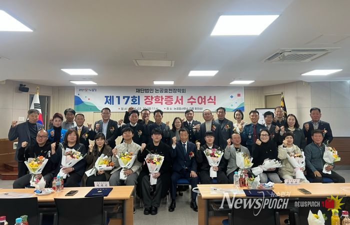 뉴스펀치 조평훈 기자 | (재)논공효천장학회는 지난 20일 논공읍 행정복지센터에서 장학회 임원과 장학생, 학부모 등 50여 명이 참석한 가운데 ‘제17회 장학증서 수여식’을 개최했다고 밝혔다.