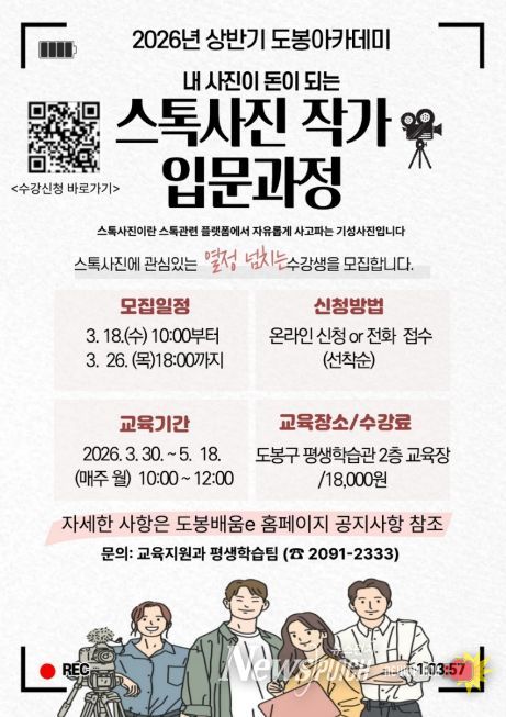 뉴스펀치 박상훈 기자 | 서울 도봉구가 오는 3월 30일부터 5월 18일까지 매주 월요일 도봉구 평생학습관 2층 대강의실에서 ‘스톡사진 작가 입문과정’을 운영한다고 밝혔다.