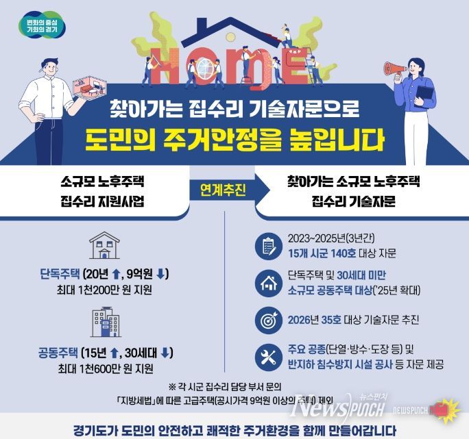 뉴스펀치 박상훈 기자 | 경기도가 소규모 노후주택에 거주하는 도민들의 집수리 고민을 덜어주기 위해 찾아가는 무료 기술자문을 올해는 35곳에서 추진한다.