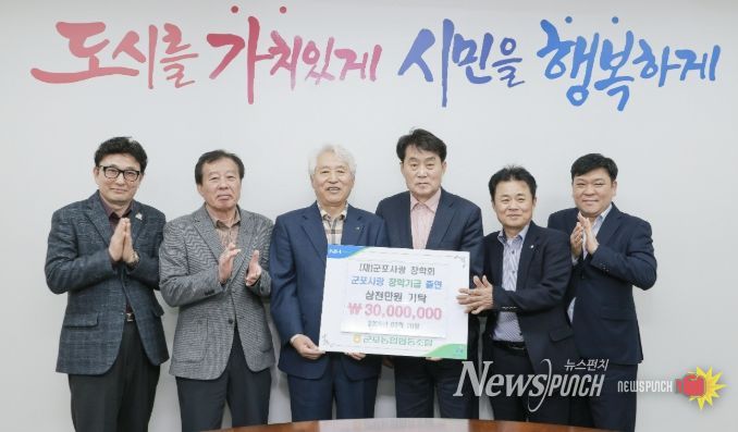 뉴스펀치 박상훈 기자 | 군포농협 이명근 조합장은 3월 20일 군포시청 시장실에서 (재)군포사랑장학회에 지역 인재 육성을 위해 써 달라며 장학금 3천만원을 기탁했다.