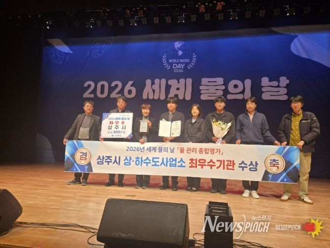 뉴스펀치 박세훈 기자 | 상주시 상수도사업소, 하수도사업소는 3월 20일 경북도 주관하에 구미시 강동문화복지회관에서 개최된 '2026년 세계 물의 날 기념식'에서 상하수도 업무 추진에 기여한 공로를 인정받아 기관 표창을 수상했다.