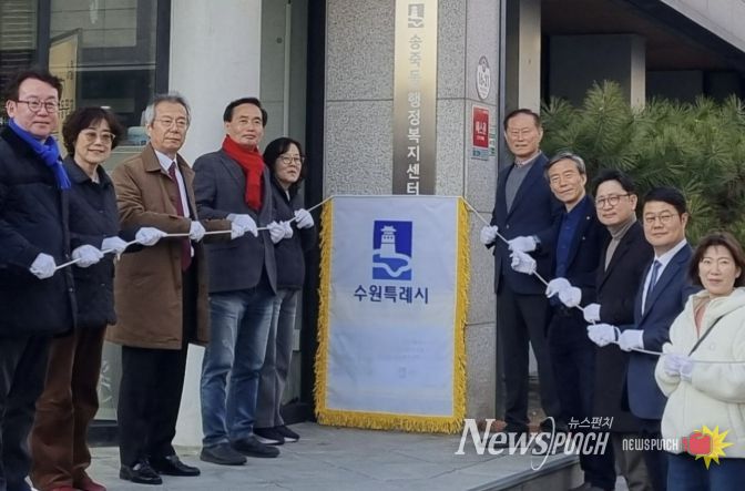 뉴스펀치 박상훈 기자 | 수원시 장안구 송죽동은 지난 19일, 송죽동 행정복지센터 입구에서 주민 중심의 마을 교육 네트워크인 '2026년 동 평생학습센터'의 공식 출범을 알리는 현판 제막식을 개최했다.