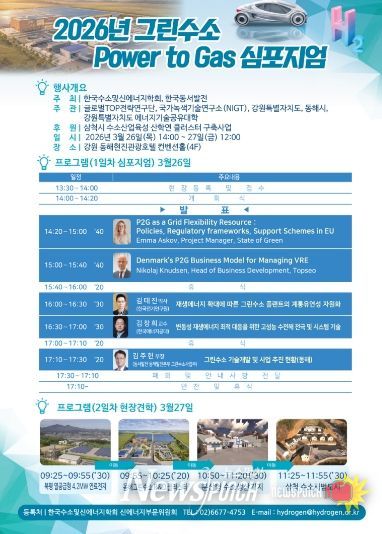 뉴스펀치 조평훈 기자 | 동해시가 3월 26일부터 27일까지 이틀간 현진관광호텔 및 수소산업 현장 일원에서 '제5회 그린수소 P2G(Power to Gas) 심포지엄'을 개최한다.