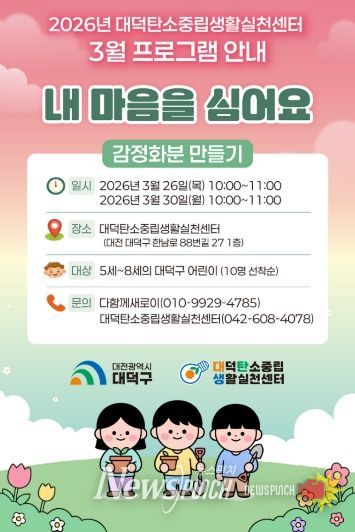 프로그램 참여 신청은 지역 5세부터 8세 어린이 10명을 대상으로 선착순으로 진행되며, 프로그램은 오전 10시부터 11시까지 대덕탄소중립생활실천센터에서 운영된다.