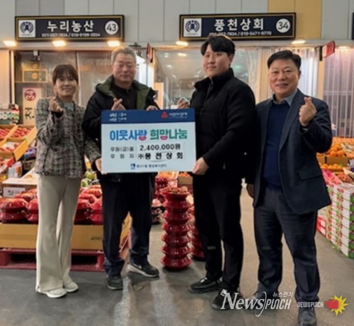 뉴스펀치 박상훈 기자 | 수원시 팔달구 화서1동은 수원시농수산물도매시장 내 풍천상회가 지역 내 저소득층 학생을 위한 따뜻한 나눔을 실천해 지역사회에 귀감이 되고 있다고 밝혔다.