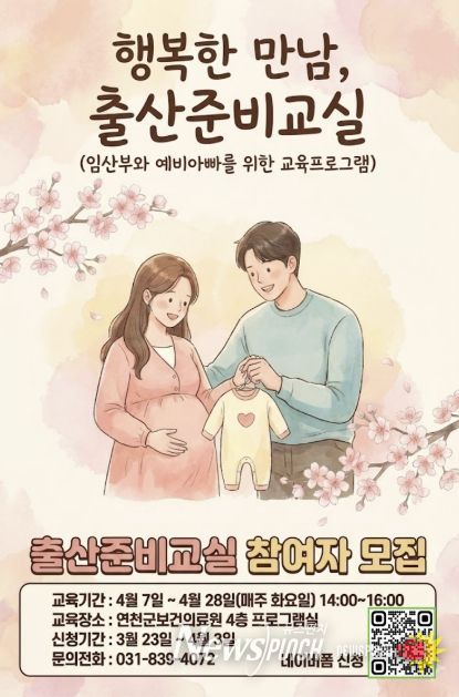 뉴스펀치 박상훈 기자 | 연천군보건의료원은 관내 임산부와 예비 아빠를 대상으로 임신·출산에 대한 막연한 두려움을 해소하고 안전한 출산 환경을 조성하기 위해 ‘2026년 상반기 출산준비교실’을 운영한다고 밝혔다.