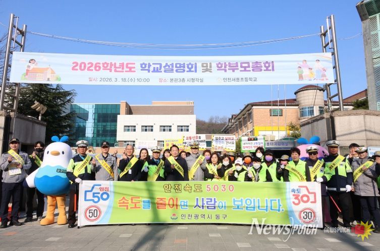 뉴스펀치 정홍균 기자 | 인천 동구는 23일 서흥초등학교 일원 통학로에서‘아이 먼저, 안전 먼저’를 주제로 어린이 교통안전 캠페인을 실시했다고 밝혔다.
