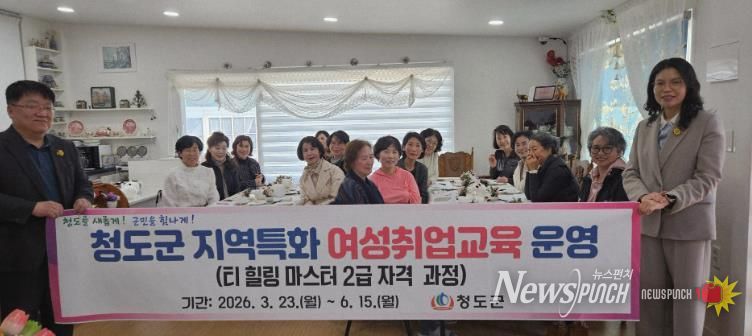 뉴스펀치 박세훈 기자 | 청도군은 23일 지역 여성들의 취업 역량 강화를 위한 2026년 지역특화 여성취업교육 ‘티 힐링 마스터 2급 자격과정’을 개강하고 본격적인 운영에 들어갔다.