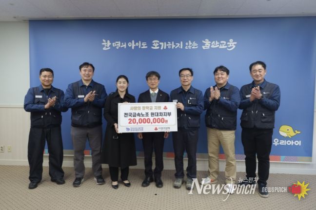 뉴스펀치 김윤걸 기자 | 울산광역시교육청은 23일 접견실에서 현대자동차노동조합(지부장 이종철)에서 저소득층 학생 지원을 위한 장학금 2,000만 원을 전달받았다.