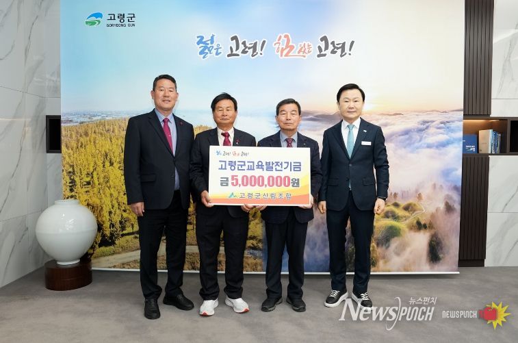 뉴스펀치 박세훈 기자 | 3월 23일 고령군산림조합(산림조합장 임대성)에서 고령군청을 방문하여 지역의 교육 발전과 인재 양성을 위해 사용해 달라며 교육발전기금 500만원을 기탁했다.