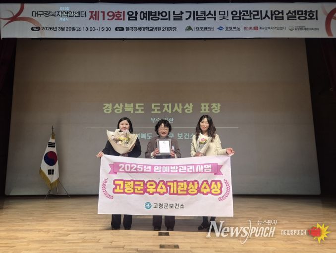뉴스펀치 박세훈 기자 | 고령군은 지난 3월 20일 칠곡경북대학교병원 대구경북지역암센터에서 개최된 ‘제19회 암예방의 날 기념식’에서 2025년 암예방관리사업 우수기관상을 수상했다.