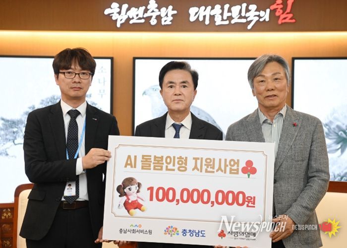 뉴스펀치 이현승 기자 | 충남도는 23일 충남사회복지공동모금회로부터 고독사 예방을 위한 인공지능(AI) 돌봄인형 지원 사업비 1억원을 기탁받았다.