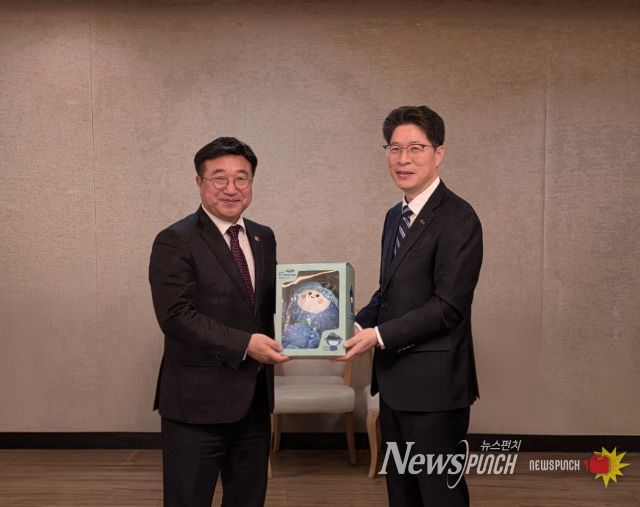 황기연 전남도지사 권한대행은 2026여수세계섬박람회의 마스코트인 ‘다섬이’ 인형을 윤호중 장관에게 전달하며 섬박람회에 대한 관심과 협조를 요청했다.