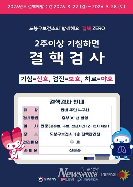 뉴스펀치 박상훈 기자 | 서울 도봉구가 제16회 결핵예방의 날(3월 24일)을 맞아 이달 22일부터 28일까지 결핵예방주간을 운영한다.