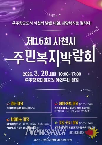 뉴스펀치 박세훈 기자 | 사천시자원봉사단체협의회가 주관하는 '제16회 사천시 주민복지박람회'가 3월 28일 우주항공테마공원에서 개최된다.