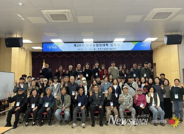 뉴스펀치 박상훈 기자 | 파주시는 지난 23일 파주시농업기술센터에서 신입생과 관계자 등 70여 명이 참석한 가운데, 미래 농업을 이끌어갈 정예 인재들의 힘찬 출발을 알리는 '2026년 파주농업인대학 입학식’을 개최했다.