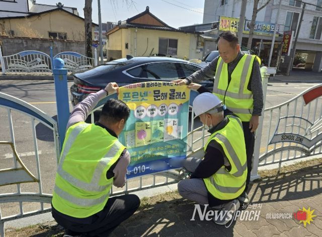 뉴스펀치 박세훈 기자 | 창녕군은 23일 남지초등학교 인근에서 개학기를 맞아 학교 주변 불법광고물 합동정비 캠페인을 실시했다.