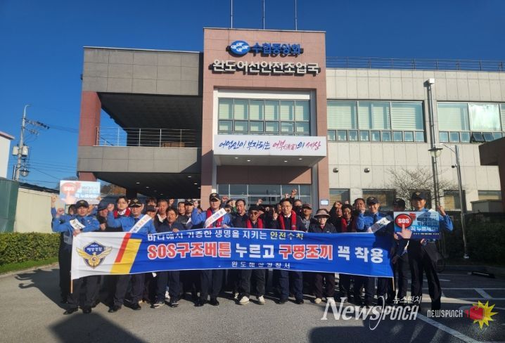 뉴스펀치 김용희 기자 | 완도해양경찰서(서장 김태환)는 지난 19일 완도군 원동항에서 완도 어선안전조업국과 합동으로 어민들과 함께하는 ‘구명조끼 착용 캠페인’을 실시했다.