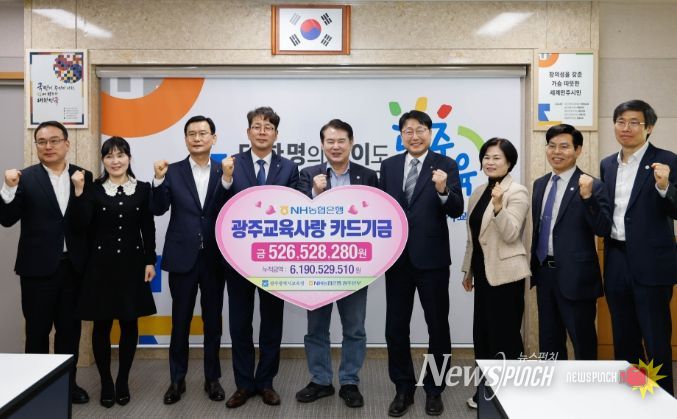 뉴스펀치 최영남 기자 | 광주시교육청은 지난 20일 본청 상황실에서 NH농협은행으로부터 지난해 광주교육사랑카드 적립금 5억2천652만원을 전달받았다.