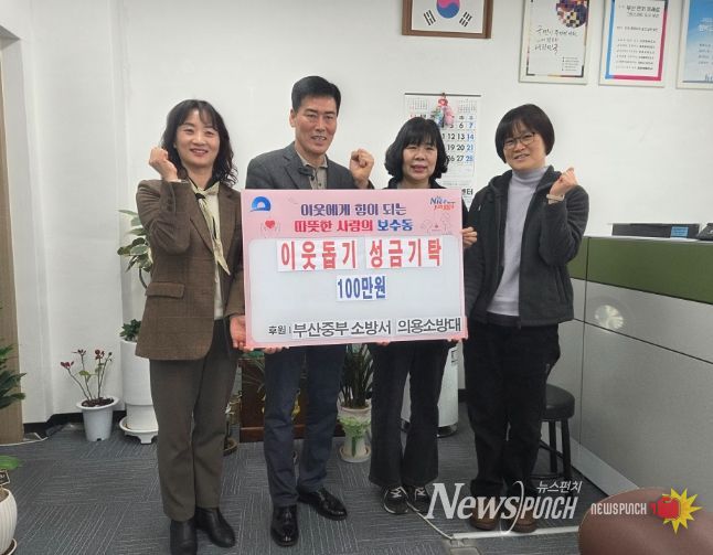 뉴스펀치 김윤걸 기자 | 부산중부소방서 의용소방대(남성대장 이봉석, 여성대장 심경란)가 지역 내 어려운 이웃을 돕기 위해 지난 23일 보수동 행정복지센터에 성금을 기탁했다.