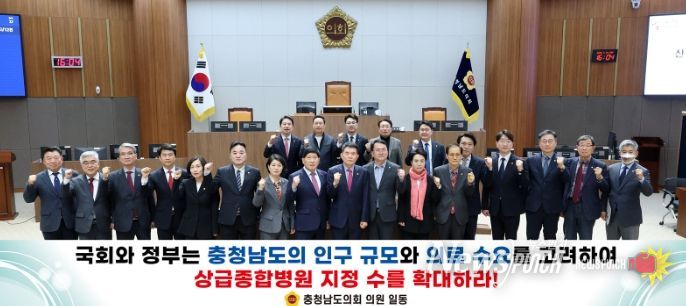 이에 충남도의회는 정부에 ▲충청남도의 상급종합병원 지정수 확대 ▲수도권 중심의 평가·지정 체계 개선 ▲중증·응급·필수의료 대응을 위한 지역 완결형 의료 네트워크 구축 ▲지역 의료인력 양성을 위한 제도적·재정적 지원 마련 등을 촉구했다.