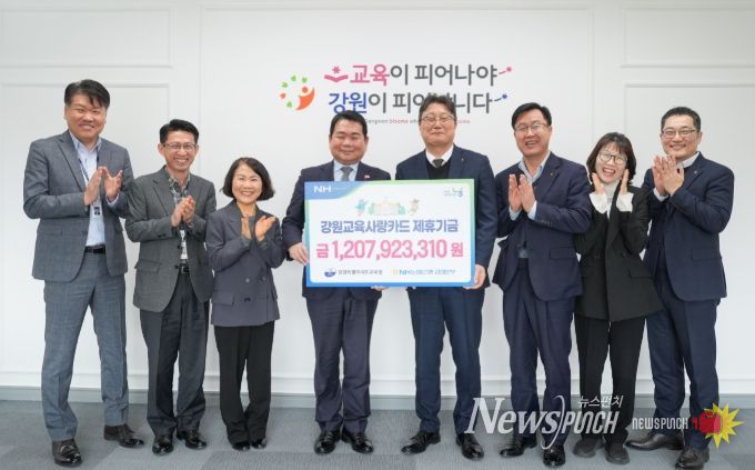 뉴스펀치 조평훈 기자 | 강원특별자치도교육청은 24일, NH농협은행 강원본부(본부장 이명호)로부터 강원교육사랑카드 제휴기금을 전달받았다.